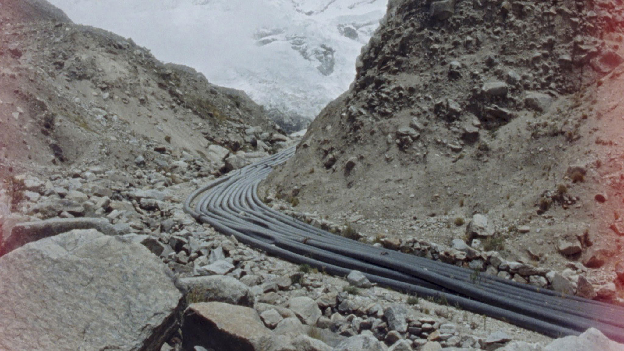 Aggregate States of Matters highlights the ambiguous relationship between humans and nature. For her new 35mm film shot in Peru, Rosa Barba worked with communities that are affected by the melting of a glacier and geological time becoming exposed. Barba shows the slow disappearance of the glacier and the perception of this fact within the Quechuan population in the Andes. While exploring different local myths, she outlines the possibility of translating ancient knowledge into the present time.